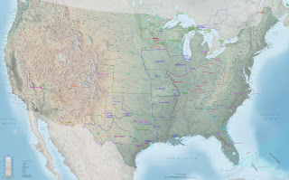 Aquí va una vista general del mapa de Nord Amèrica que estic fent per Rifts. cada vegada és més complert. Fins i tot hi poso les Ley Lines que es descriuen en els manuals de món. La Federació de la Màgia és un cas apart, per què representa que és curulla de Ley Lines, però en cap manual surt per on passen, per tant se suposa que n'hi ha per tot arreu.